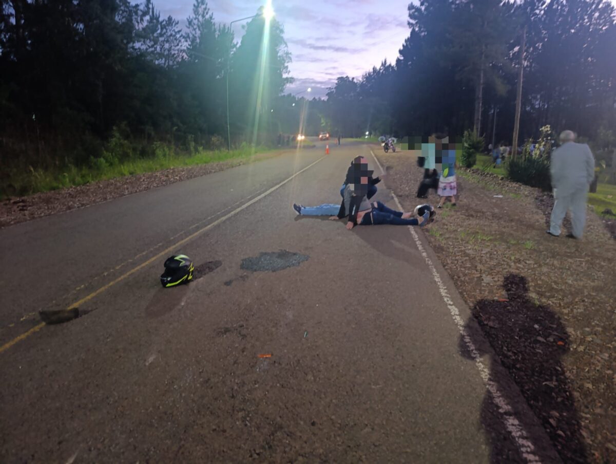Esta tarde, cerca de las 19:30, una motocicleta Honda 150 cc que circulaba por la Ruta Provincial 225 en sentido Caá Yarí–Alem colisionó con un animal canino, provocando la caída de sus ocupantes.