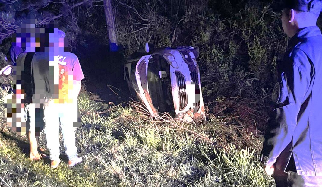 El hecho se registró en la noche de ayer Domingo, alrededor 22:15 horas, en la ruta provincial Nro 2, acceso a la ruta provincial Nro 209, cuando un automóvil Peugeot 408, quien circulaba por la intersección antes mencionada perdió el control y despintando hacia un desnivel lateral de la ruta.