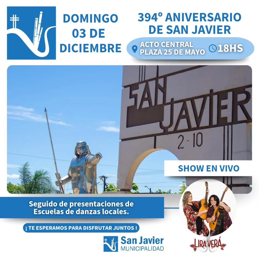 La Municipalidad de San Javier invita a la comunidad en general al acto central conmemorativo por cumplirse 394 años de la fundación y 146 años de la refundación de la ciudad, con el siguiente programa: